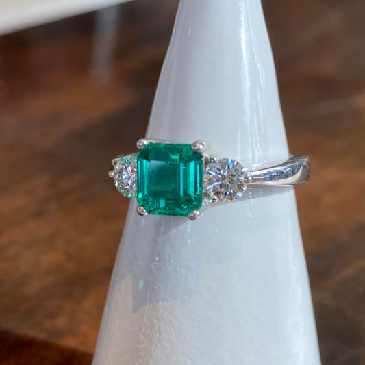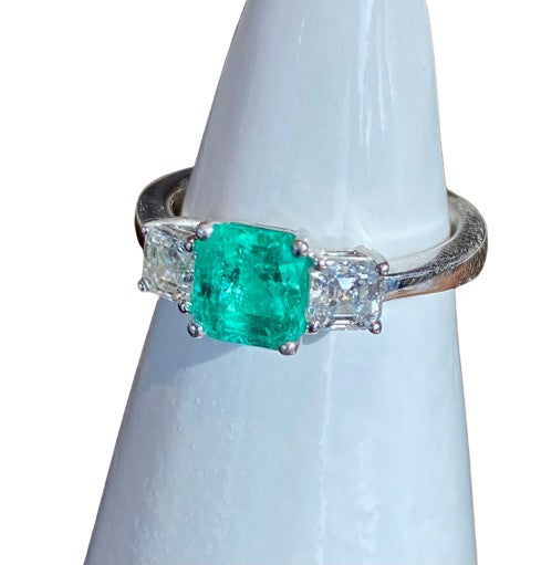 PLATINUM EMERALD AND DIAMOND RING