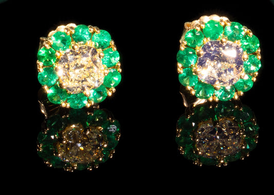 18KY Diamond Earrings with Emerald Halos