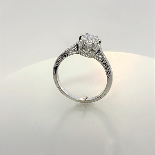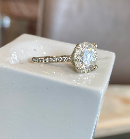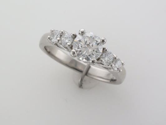 18KW Round Brilliant Diamond Ring w/ Diamond Accents