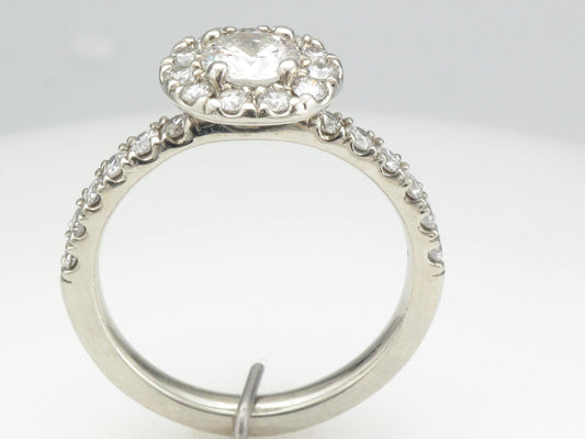 18KW Round Brilliant Diamond Ring with Diamond Halo