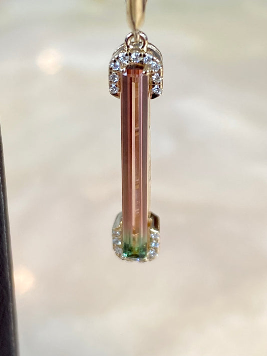 14KY BI-COLORED TOURMALINE AND DIAMOND EARRINGS