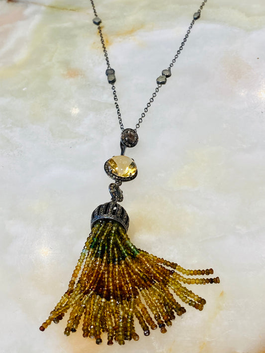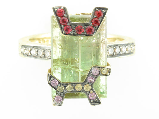 Robert Wander Green Tourmaline Ring with sapphire and Diamond Accents